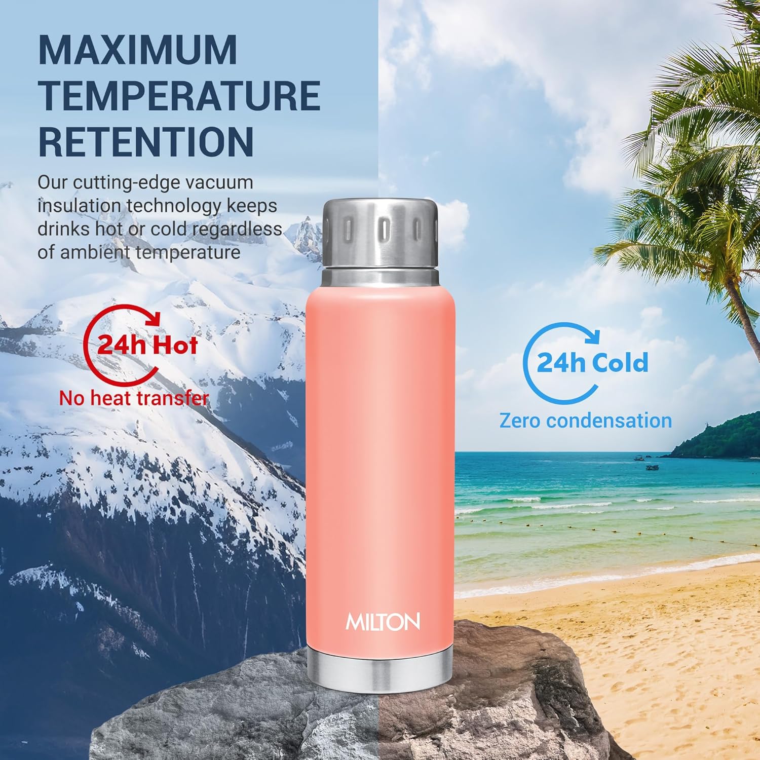 - SAY GOODBYE TO “OOPS” MOMENTS : Our Milton hot and cold bottle has leak proof design that keeps your bag dry, whether you’re on the move.